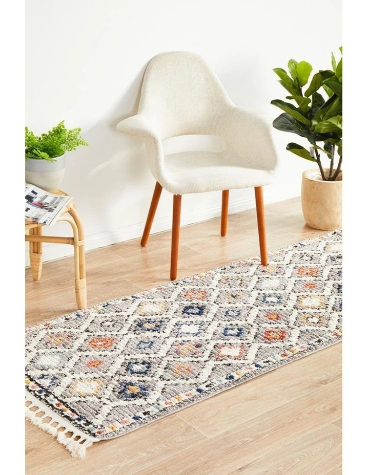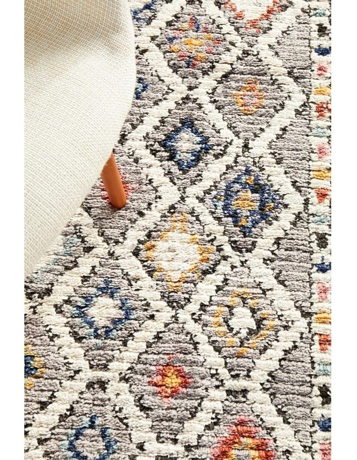 Interlocking diamond motif injected in an excellent piece of rug with grey field creates a vibrant tribal decor statement to your favorite room or location. This soft, 20 mm pile is an elegant piece paying homage to the rich heritage of Morocco and sprinkling a bohemian artistic inspiration to any setting. Choose from this magnificent range, inviting and stylish, these rugs offer a terrific modern look to any decor.