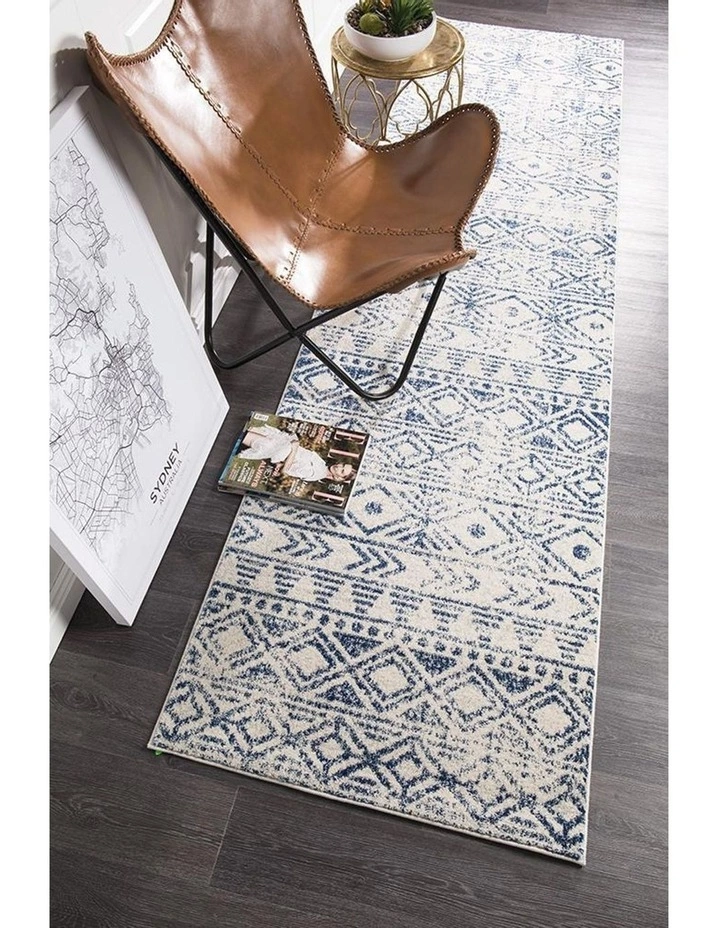 Rug Culture Oasis Ismail White Blue Rustic Runner Rug