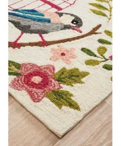 Rug Culture Copacabana Finch and Nest Exquisite Indoor Outdoor Rug Cream