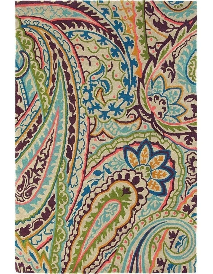 The Kashmir Spice rug lives up to its name by presenting us with vibrant colours and intruiging design details, tamed only by the background upon which they are set.