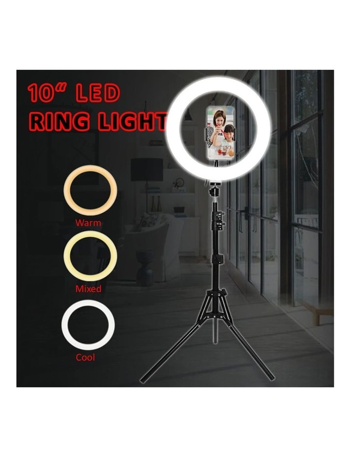 Built with 128 LED bulbs, the 10" dimmable ring light restores true colour and emits gorgeous portrait lighting. High-quality, foldable and durable, the LED ring light comes with adjustable colour temperature ranging between 3000k-6500k and controllable brightness from 10% to 100% as well.