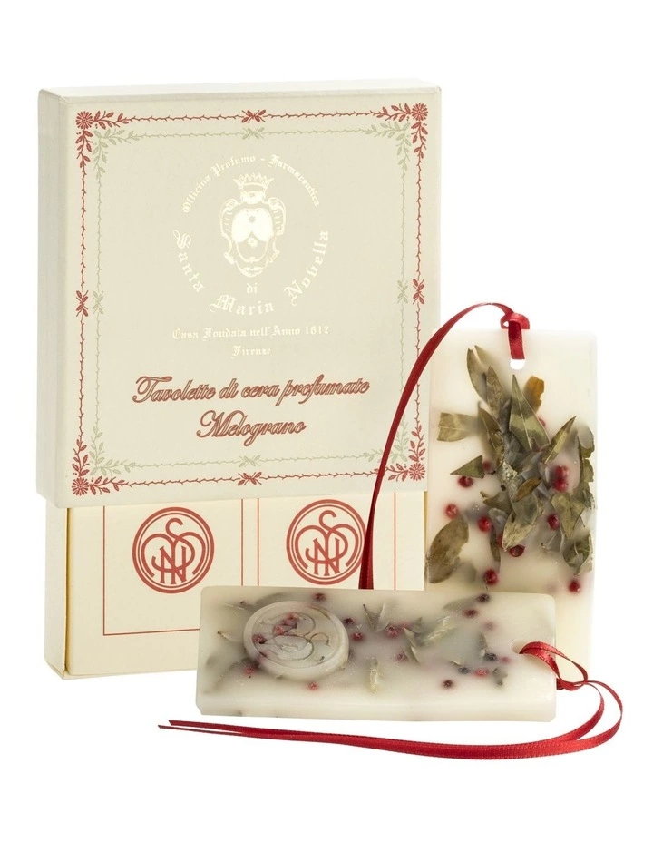 Handcrafted wax tablets, scented with Officina Profumo-Farmaceutica di Santa Maria Novella’s Melograno fragrance.