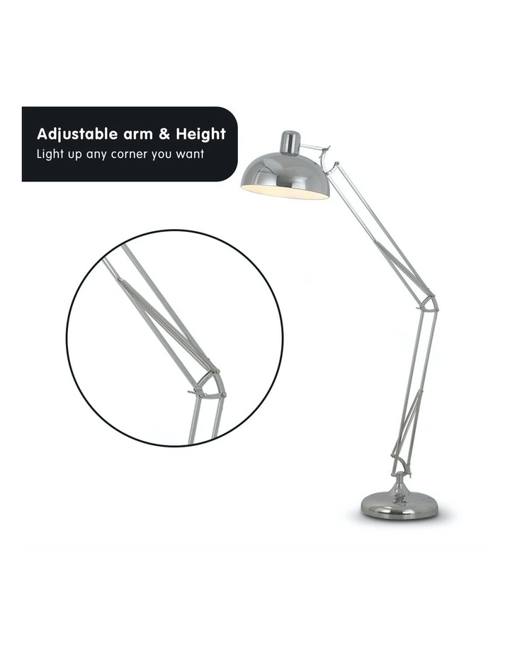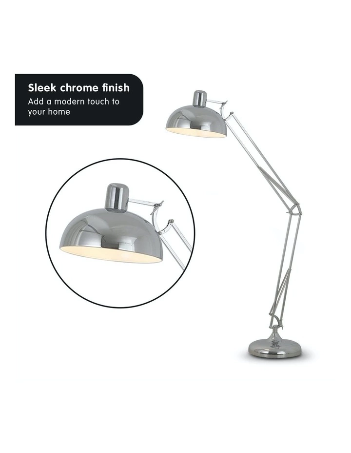 The chrome surface adds a modern touch to any interior, and is easy to clean for lasting shine. The half-globe lamp shade directs light downwards, making this lamp ideal for reading, sewing, crafting, and other daily tasks where you’d want additional illumination.