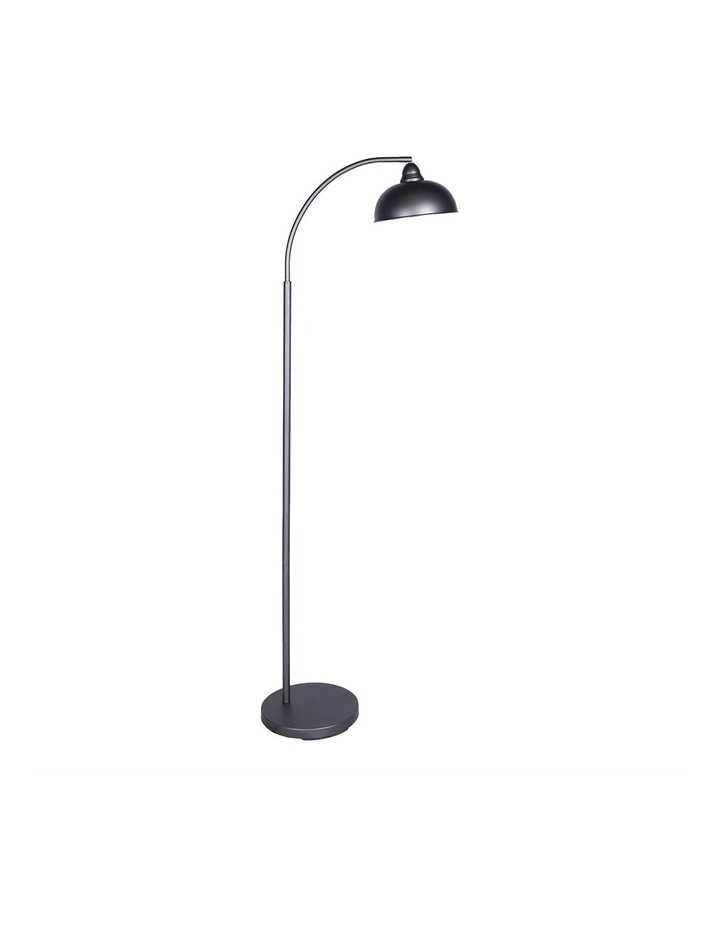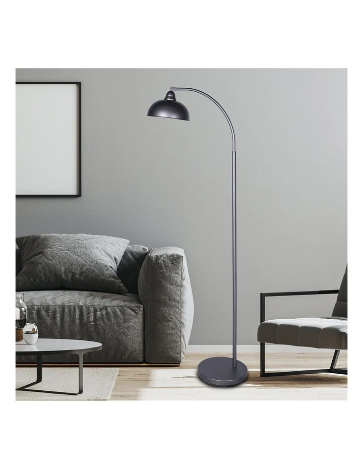 This floor lamp features an industrial-chic design and is made from dark grey lacquer and metal. It will look good next to a sofa as an accent light, or in your bedroom as a standing bedside lamp.