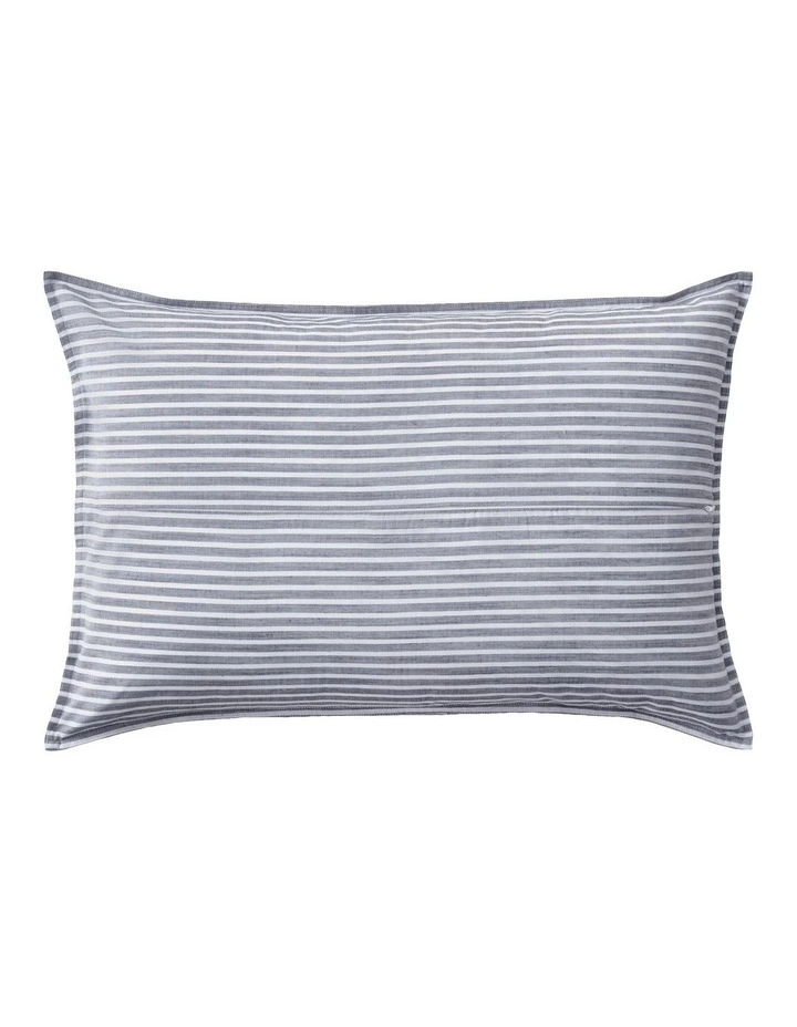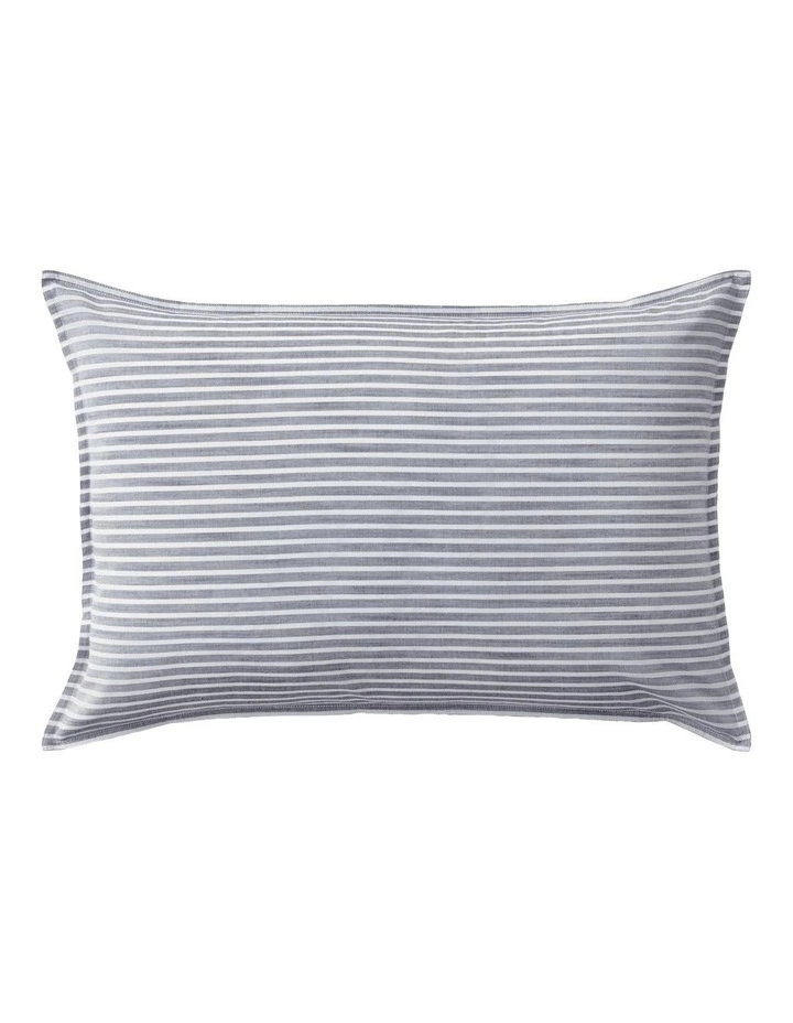 Crafted from vintage washed chambray with contemporary yarn- dyed stripes, Sheridan’s Reilly Stripe breakfast cushion is an effortless styling piece. Completed with a tonal twin needle border stitch, it pairs with a variety of design cues. – 100% organic cotton – Fill: 100% polyester, Fill lining: 100% polyester – Modern stripe pattern – Twin needle tonal stitch – Pairs well with Reilly quilt cover – 40cm x 60cm