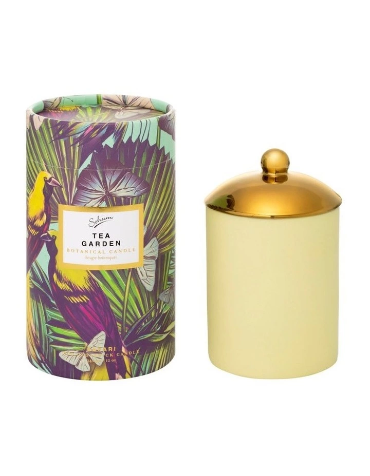 SOHUM’s own Botanical wax blend, finished with a cedarwick induces a soft ambient glow infused with vivid fragrance for optimum burning quality. Housed in a double fired vessel with embellished lid. Tea Garden Notes: Green Tea, Almond, Black Amber, Vanilla Pods.