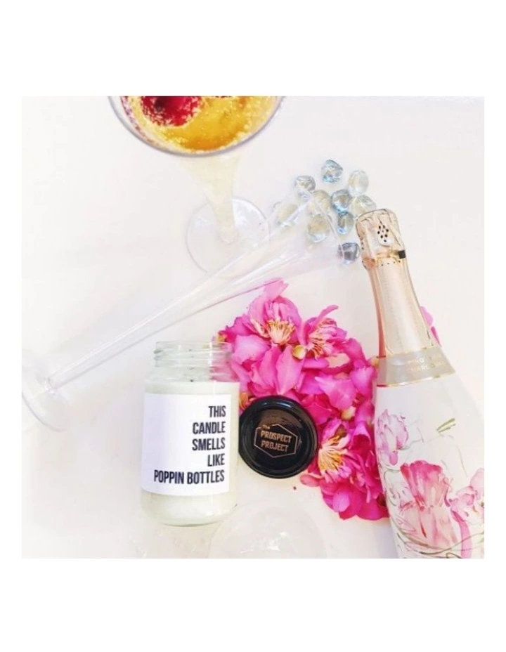 With more pop than Brittneys and Christinas careers combined, our Poppin Bottles soy candle is sweet, sassy and oh-so-sexy. Think: crisp, light, sparkling champagne paired with lush, fresh strawberries. Whether youre a lover of Dom, Veuve, or the good ol Stoli- Bolli (we bow down to your genius, Patsy and Edina), we know youll love our unique blend of berry n booze-y goodness.
