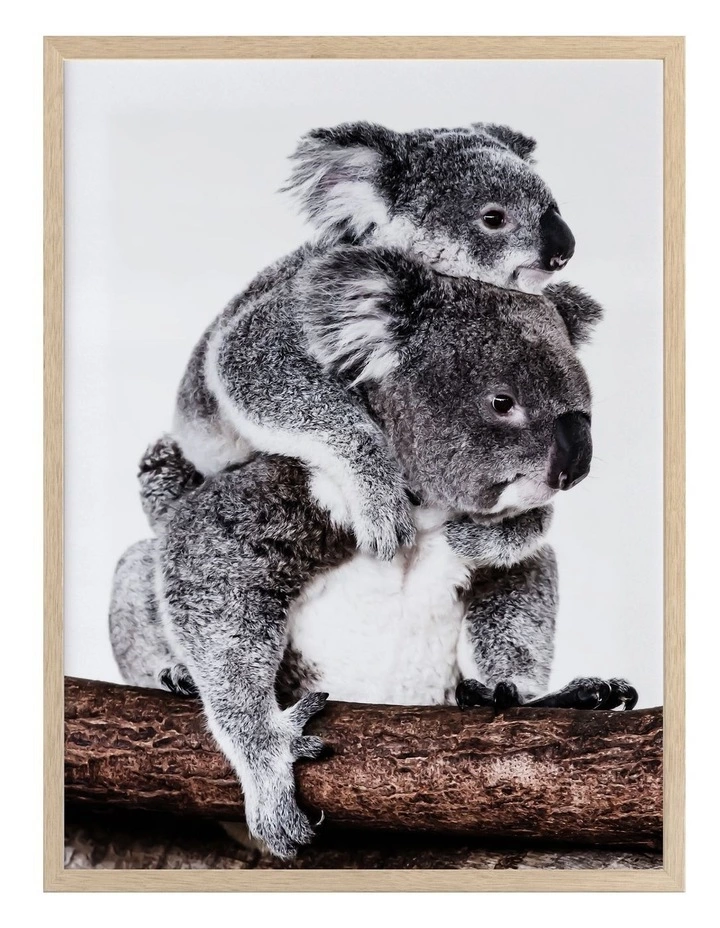 Mama Bear – A photographic image of a baby koala taking a ride on its mother’s back.FRAMED ART: Giclee printed using archival inks and paper – which means no fading! Framed with a quality moulding and mounted behind museum grade plexiglass. Comes ready to hang.