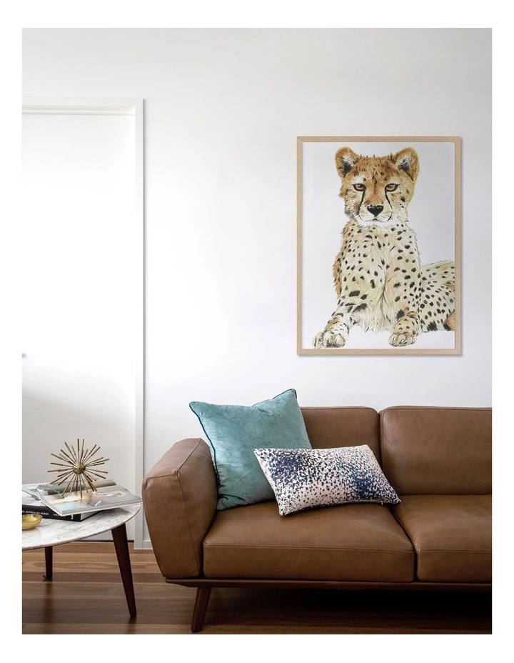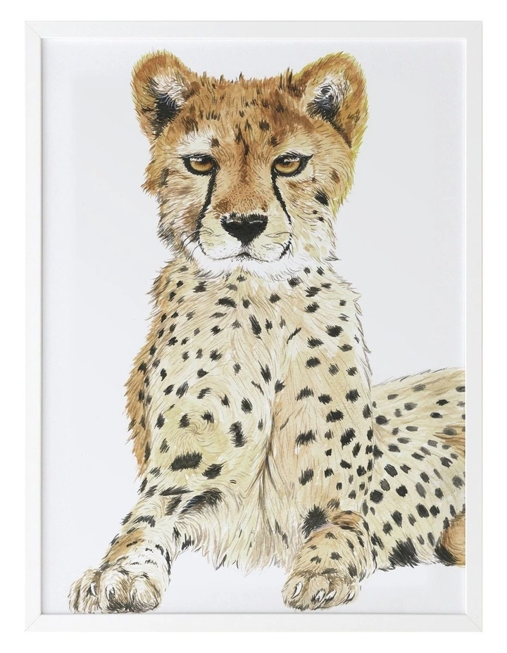Smiling Eyes Framed Print: The stance of this black spotted leopard creates a fierce, but relaxing, energy to any room.FRAMED ART: Giclee printed using archival inks and paper – which means no fading! Framed with a quality moulding and mounted behind museum grade plexiglass. Comes ready to hang.