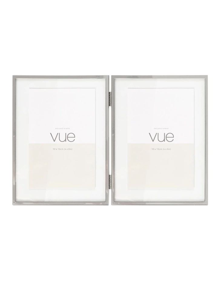 Vue Double Shiny Silver Metal Photo Frame 10x15cm (x2)