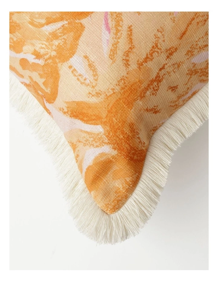 Vue Calido Leaf Print Cushion with Fringe in Pink