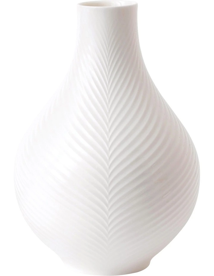 Taking the natural shape of a planted bulb, the White Folia Bulb Vase 23cm truly defines bringing natures beauty into the home. Silky white china is detailed with linear, leaf formations narrowing out towards the top of the vase. The White Folia collection is inspired by the beautiful, natural forms found in nature, perfectly encased in white bone china. This range features individual patterns and motifs unique to each piece, meaning that you can curate your own, bespoke collection. Organic forms and a subtle floral patterns harmonise perfectly with the flowers that they are designed to display, making these items perfect gifts to give with beautiful florals for special occasions or for your own home. Effortlessly bringing the beauty of the outside into your home and presented in a signature Wedgwood gift box.