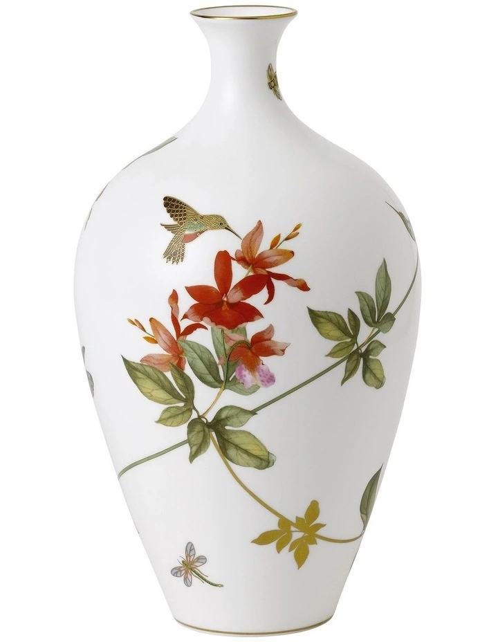Moving in a constant flash of colour, hummingbirds are Mother Nature’s feathered jewels. This 25cm Hummingbird Vase encapsulates the beauty of these fairylike creatures on silky white fine bone china, pairing the birds with oversized blooms for a real statement piece. Get lost in a world where fantasy meets reality and decorate your home with the beauty of this unique bird.
